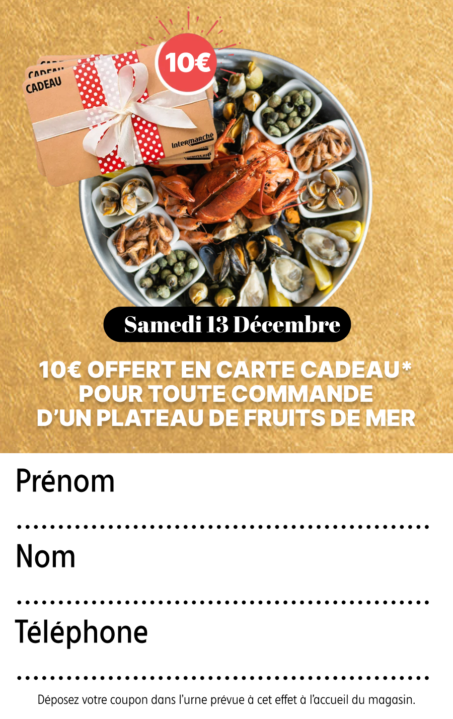 *Dès 50€ d'achat minimum. Etre porteur d'une carte fidélité. Pour toute commande d'un plateau fruit de mer à récupérer le 24/12/2025 ou le 31/12/2025