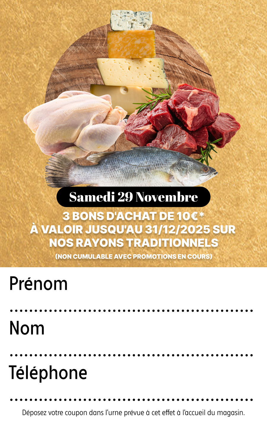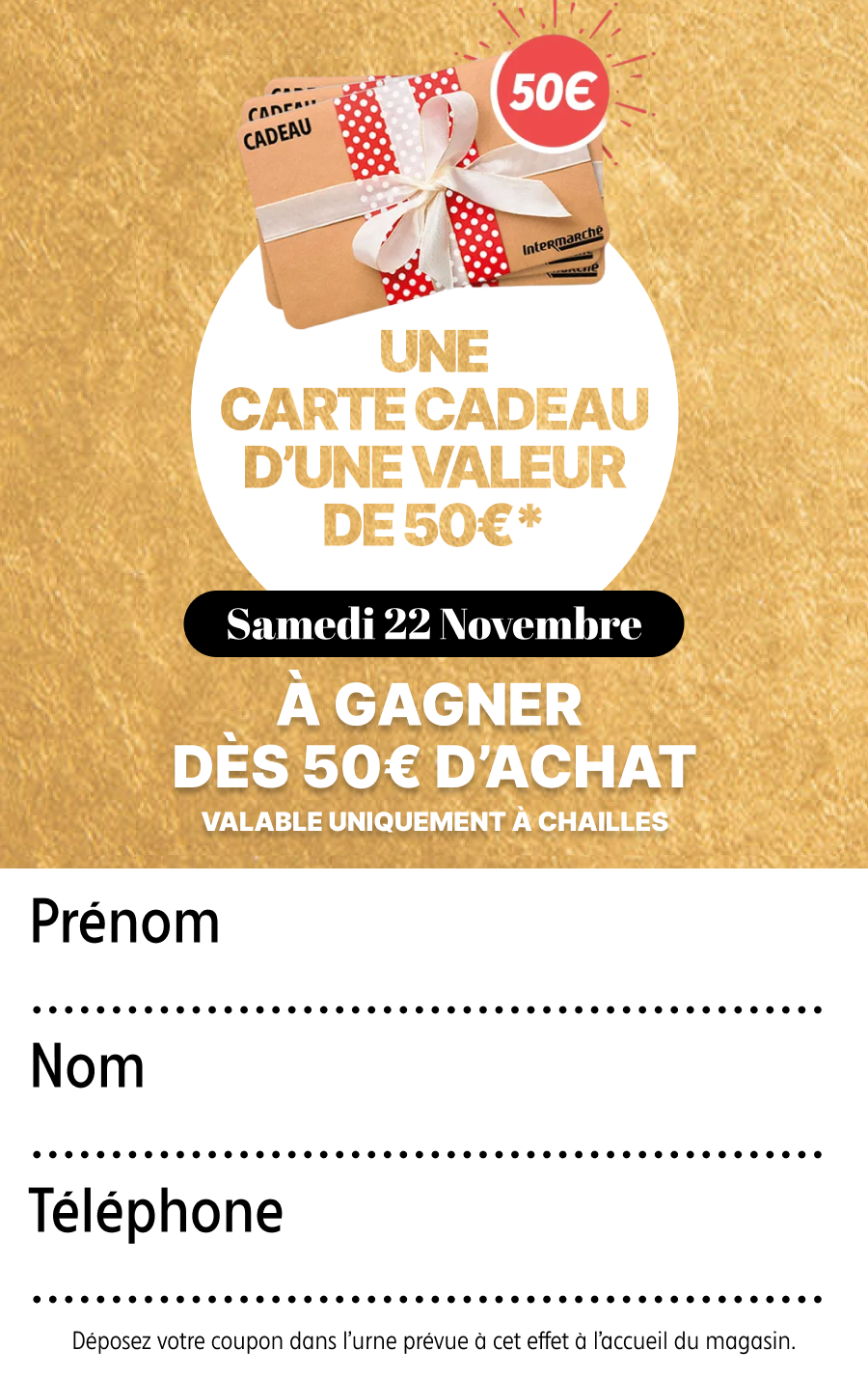 *Dès 50€ d'achat minimum. Être porteur d'une carte fidélité. Voir conditions en magasin.